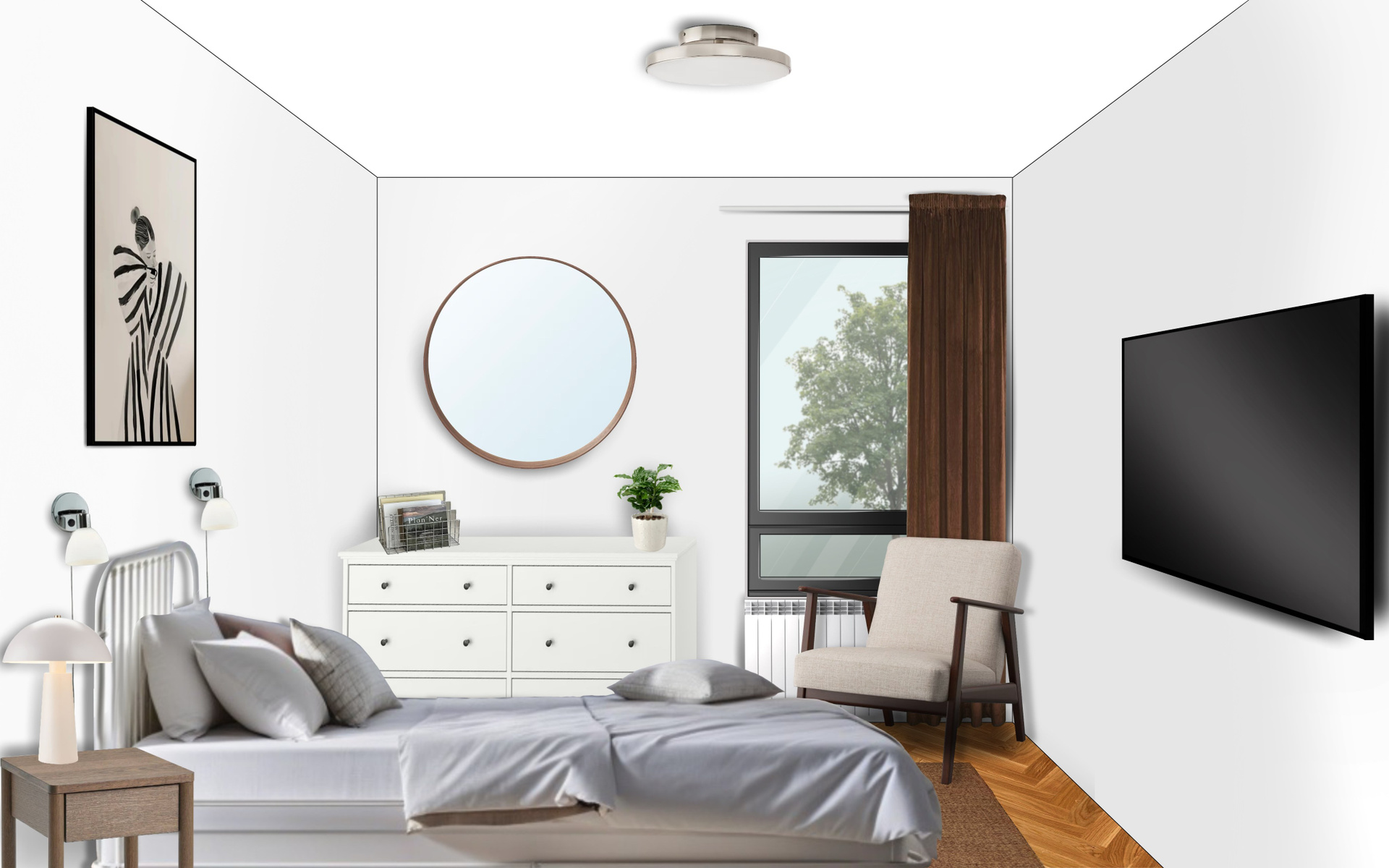 Площадь: 56 кв.м Локация: Сурчин, Белград Задача: Сделать тёплый, светлый и уютный интерьер с характером — вне зависимости от того, будет ли квартира использоваться для жизни или для аренды.